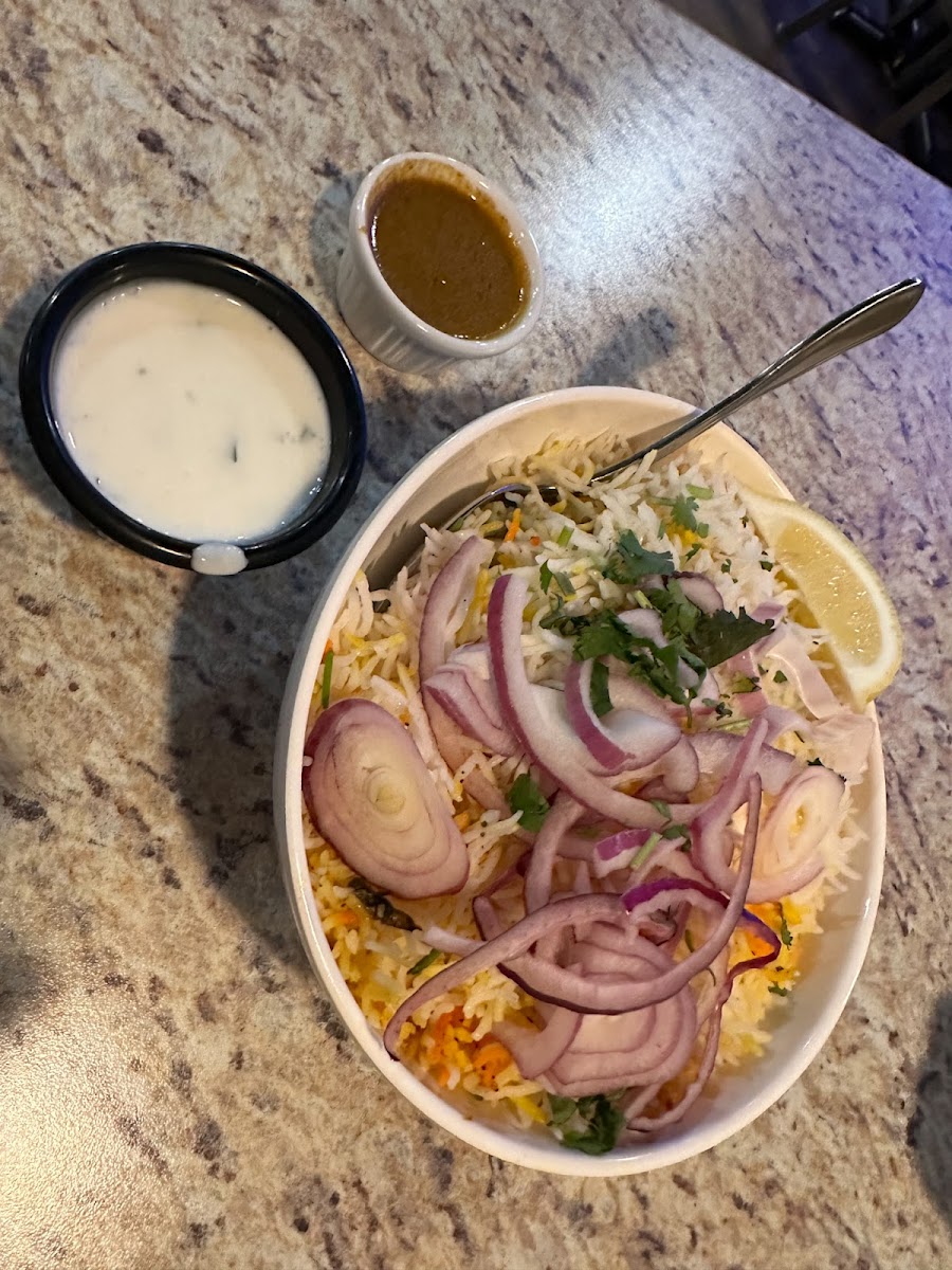 The menu leans heavily into traditional Indian cuisine, with biryani clearly taking center stage. Biryani itself isn’t just rice and meat thrown together; according to culinary research from the Indian Council of Cultural Relations, authentic biryani relies on a layered cooking method where rice and protein steam together, locking in spices and moisture. You can taste that technique here. The chicken biryani arrives with long-grain basmati rice, tender meat, and spices that are bold without being overwhelming. When the server described it as slow cooked and layered with spices, that wasn’t just sales talk-it showed in every bite.
